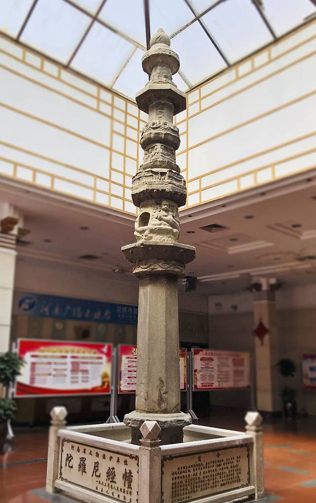 下一个目标是卫辉宾馆,陀罗尼经幢立在一个单独的大厅内,由一个保安看守,但可以入内参观。