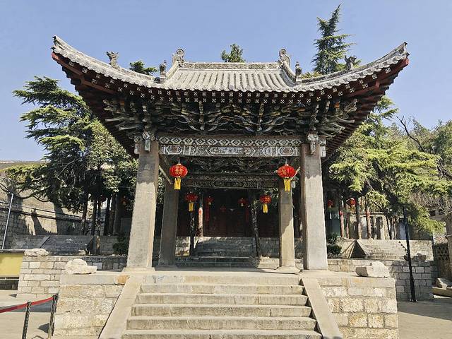 再向前是卫源庙,是百泉古建筑群中规模最大的一组建筑,一个富丽堂皇、古风悠远的院子,是过去人们祭招河神的地方。该庙初建于隋,后各朝多对其整修,现存建筑以山门和大殿为主。