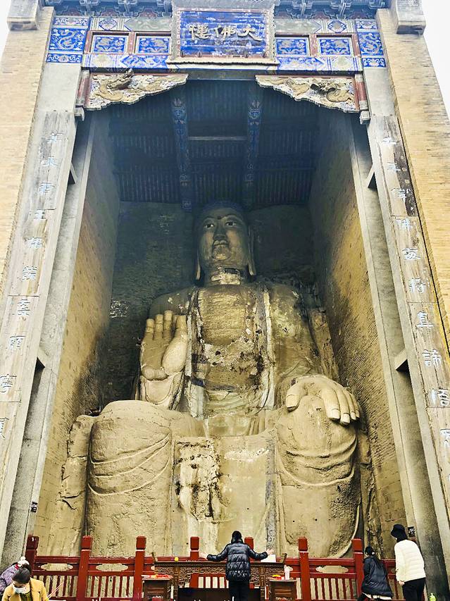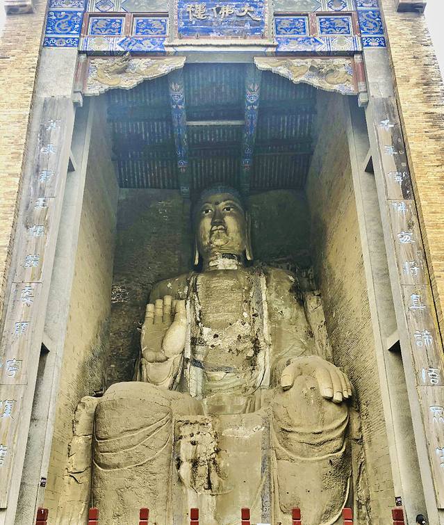 终于到了大佛,很是完美,摩崖大佛为倚坐式弥勤造像,通高21.33米,北朝时期作品。四周还加了保护的亭子,不影响欣赏又起到了保护作用。