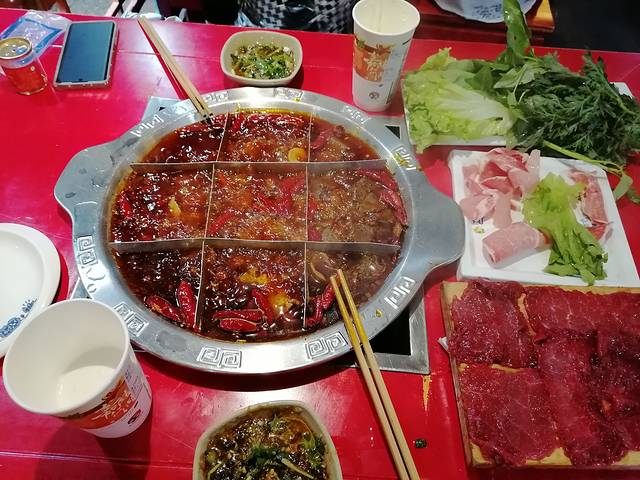 味道中规中矩,不香,比不上两路口,分量更不用说,两个人,5个菜,3荤2素,郡花是冰冻的,28七个,老肉片那是真的老,嫩牛肉味道还行,42七片,鲜鸭血不错,素菜拼盘才垃圾,半颗生菜、一点空心菜、一点茼蒿,一共198... ...