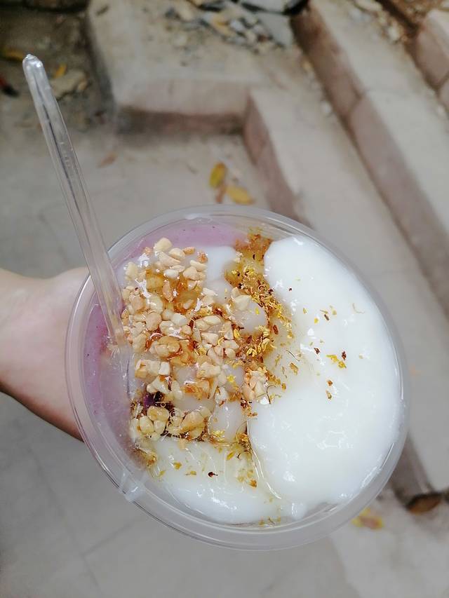 ↓晚上决定到解放碑附近吃火锅,晚餐就暂时不考虑,走到半路,有卖芋泥麻薯,一大锅紫色芋泥,拉丝的麻薯,卖相诱人,来一碗。