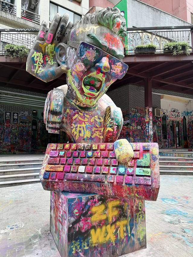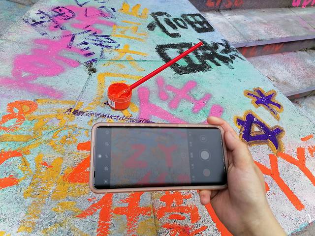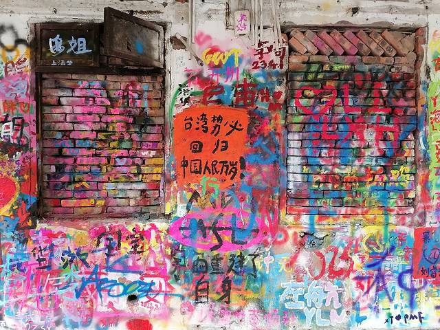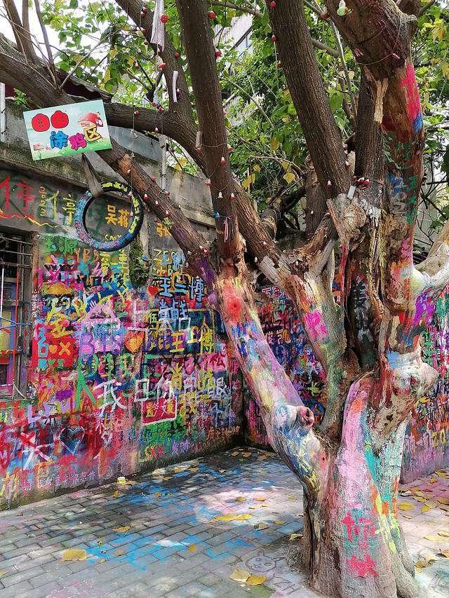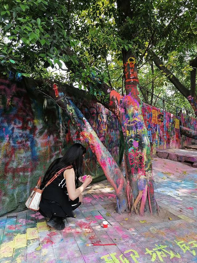 我们没有走大路,而是沿着川美后街的巷子一路向前,全部都是打卡或者前来涂鸦的游客,五花八门、热闹非凡。