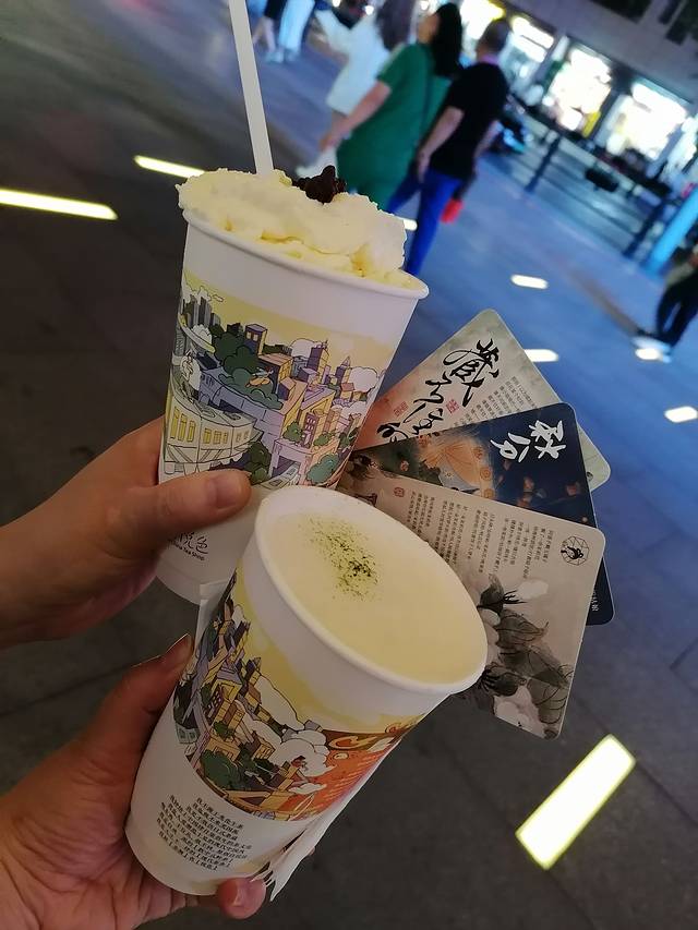 牌坊右边有家:茶颜悦色,排队预计20分钟,本想着回程之前再感受一下,望着明晃晃的太阳,还是慢慢回味前一天晚上的栀晓吧