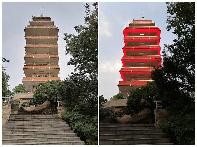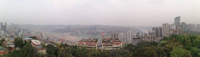 ↓↓↓在瞰胜楼的两边拍了全景,拍出来的效果远没有现场看见那么的震撼。我们下楼的时候,江对岸已经有楼房亮灯了,可惜我们等不及o(╥﹏╥)o