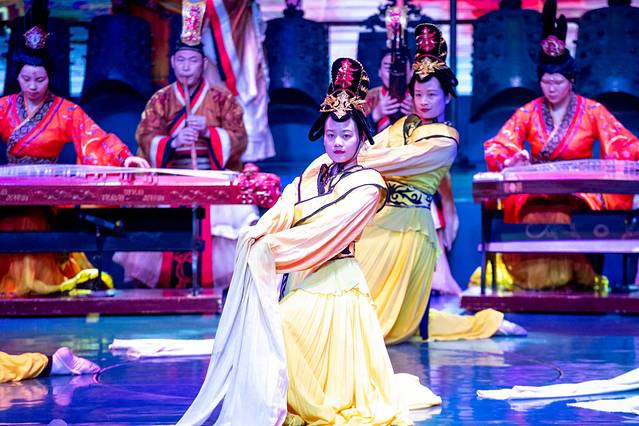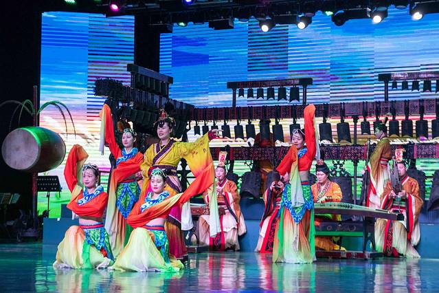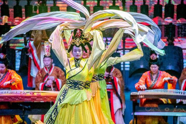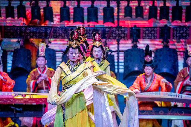在博物馆就可以看到参与过央视节目的乐团演出,当然不能错过啦!但现场的编钟当然不是出土的文物,而是根据编钟工艺重新制作的。每场演出包括《曾宫八音》《釆菱扬荷》《楚殇》《东方红》《春江花月夜》等曲目轮番上演,聆听2400年前的古乐器,仿佛穿越到了千年前,配以赏心悦目的舞蹈,舞姿翩跹、曲调悠扬。
