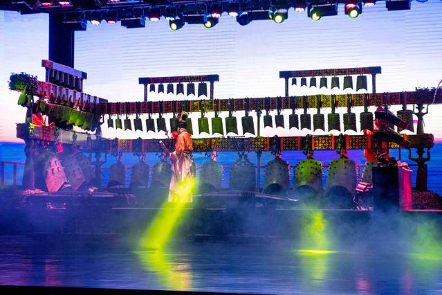 随州博物馆还有一项很吸引人的活动,每天上午10:30和下午3:30编钟演奏厅都会上演一场十分精彩演出—编钟乐舞。更是有许多人冲着这场演出来到了随州。编钟乐舞是一项源自古代的传统舞蹈表演,编钟乐舞起源于中国古代,最早可以追溯到春秋战国时期,约2500年前。在那个时代,编钟是一种十分流行的宫廷乐器,常常被用来作为重要礼仪和庆典的音乐表演。随着时间的推移,编钟逐渐演变为一种具有浓郁历史文化底蕴的艺术形式,成为中国传统文化的重要组成部分。