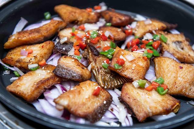 香煎武昌鱼是一道湖北地区的传统美食,以武昌鱼为主料,配以葱姜蒜等调料和少量的盐和胡椒粉,煎至金黄色。它的美味在于鱼肉的鲜嫩、鱼皮的脆爽和佐料的独特香味相结合,让人食欲大开。无论是搭配米饭、馒头或者面条,都是一道美味的佳肴。