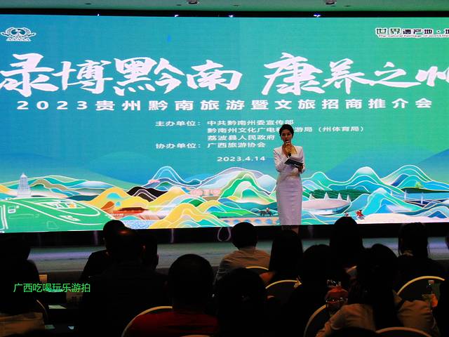 4月14日下午,“绿博黔南·康养之州”2023贵州黔南旅游暨文旅招商推介会和“乘最美高铁·游世遗荔波”2023年贵州荔波旅游暨文旅招商推介会在南宁举行。