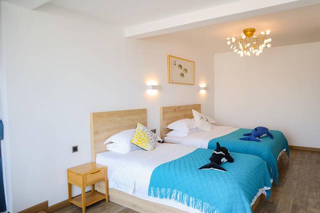 值得一提的是,这里的所有房间都是海景房!3间蓝白小楼处在山海之间,融进这片静谧的海湾。