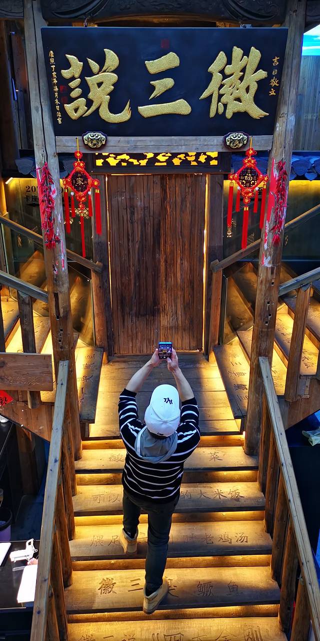 这家徽菜馆位于歙县中心城区,地理位置极佳,就在太平桥畔,一面隔着公路是太白楼和歙县博物馆,一面隔着练江与徽州古城遥遥相对,门前就是停车场,绝对的景观餐馆。