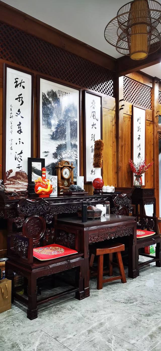 我们住的是一家名叫“聚缘轩”的客栈,地理位置在村里后街的最东头,环境比较安静,是一家四合院结构的民宅,感觉这家客栈最大特点:一是鲜亮。整个客栈新装不久,簇新簇新的,看上去一切都很新颖;二是宽敞。无论院子,还是客房,都很宽敞,不压抑;三是古朴。客栈内部陈设,都是中式传统风格布局,显得格外的含蓄沉稳。