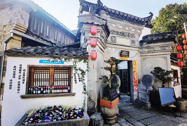 又如:慰颜府·诗莉莉文化遗址酒店。慰颜府是祝枝山儿时故居,共有12栋百年古宅构成,现已被改造成诗莉莉文化遗址酒店,酒店里面配套设施豪华典雅,在这里可以逛私家花园、泡私人汤泉、喝精致下午茶,享受一下轻奢生活,不过!这家酒店给人第一观感不佳!酒店大门是紧锁的,门上贴着小纸条,大意是:住店客人请打电话给酒店,给开门,其他人员一律不得入内,换句话说,你不住这里,想进去连门都没有!有种拒人于千里之外很自我的直感,也是很无语!在村里路过几家民宿和客栈,不是被拒绝入内,就是借口客满了不让进,假如进去消费一下,你想咋的就咋的啦!不进就不进呗!第一感觉不咋的,以后也不会来。嗯哼~