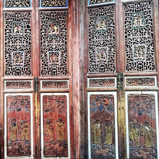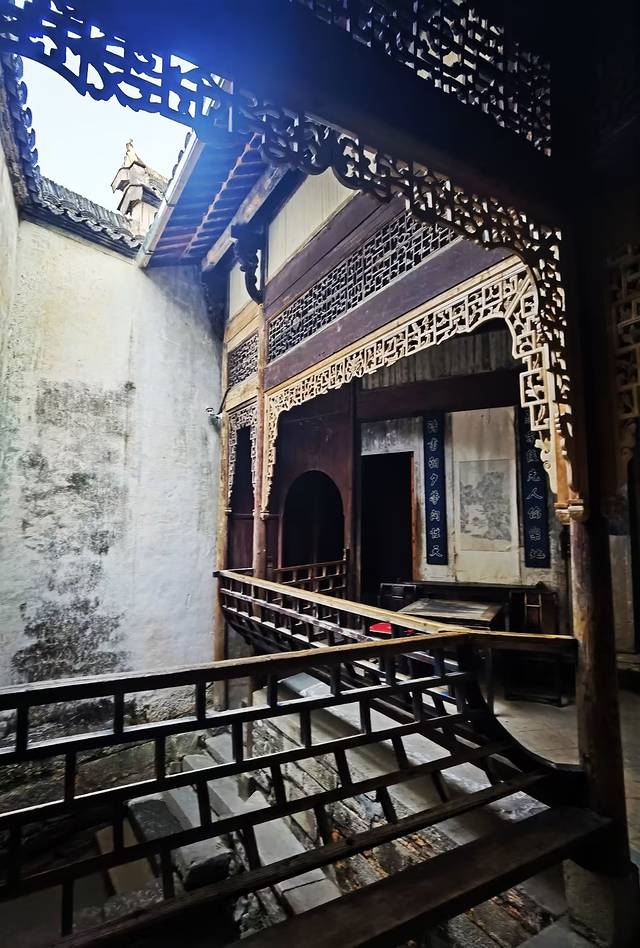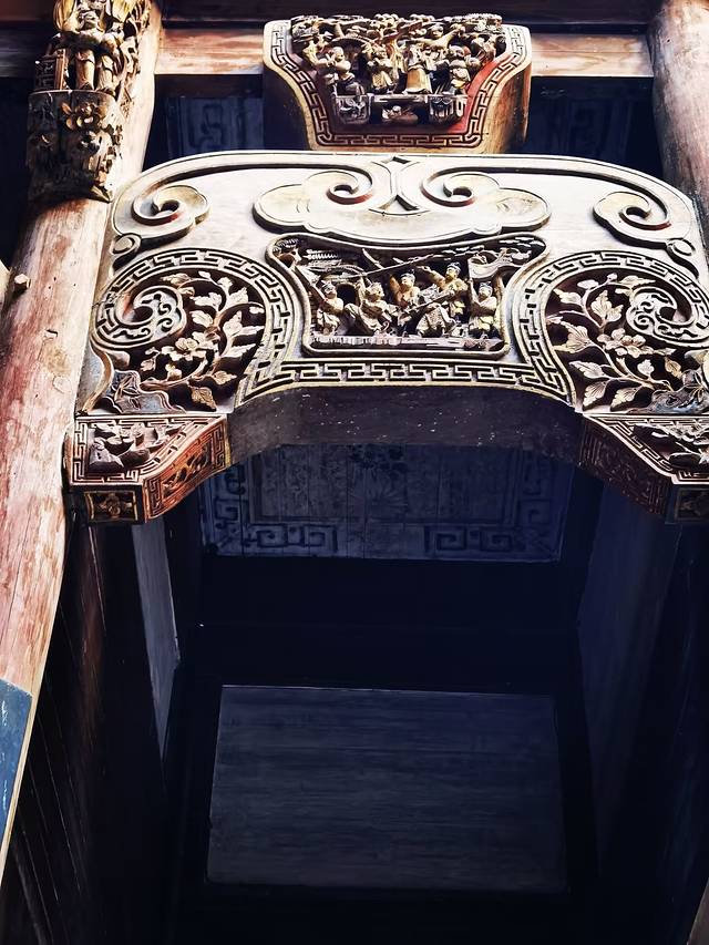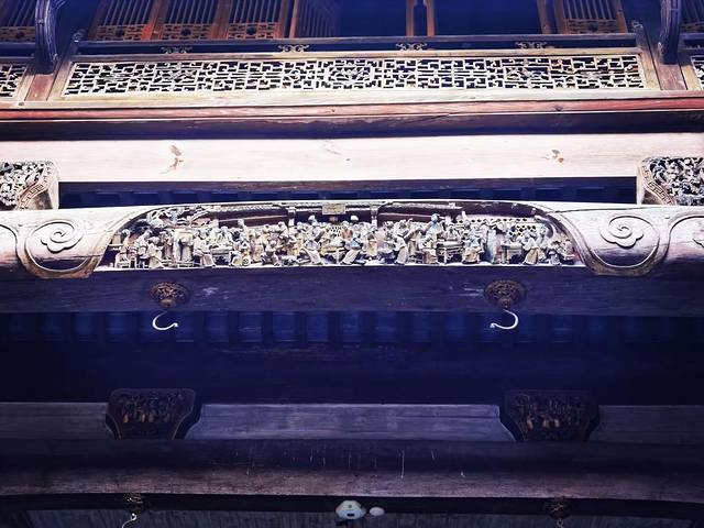 三是雕刻很有名堂。作为私宅,无论是前梁、额坊、护板、立柱、斗拱和房门上,包括天井、卧室以及后厅,到处雕刻着精美的木雕 ,并以金粉描覆,让屋内流光溢彩,添加了富丽堂皇之感,怪不得被称为“木雕艺术博物馆”。