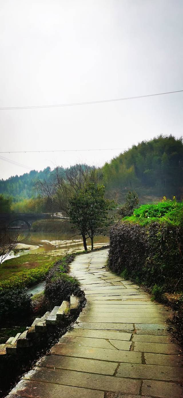 丰乐河,源出黄山南麓,一路西进后,分成三条支流,其中往南和往北的两条支流均流经西溪南村,丰乐河就像一条飘带,蜿蜒在西溪南村的村北,一座石板桥,横跨在丰乐河上,连起了整个村落。