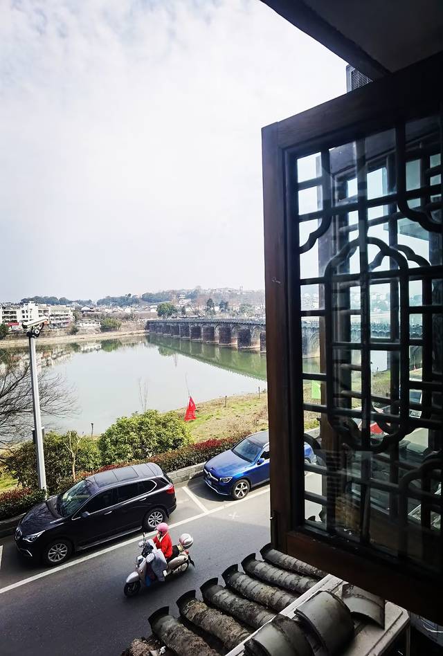 老板特热情,知道我们慕名而来,特意留了一个景观房,推窗就能一览无余的看到练江、太平桥和对岸的徽州古城,餐馆内部环境装设满满的地域特色,吃徽菜很应景。