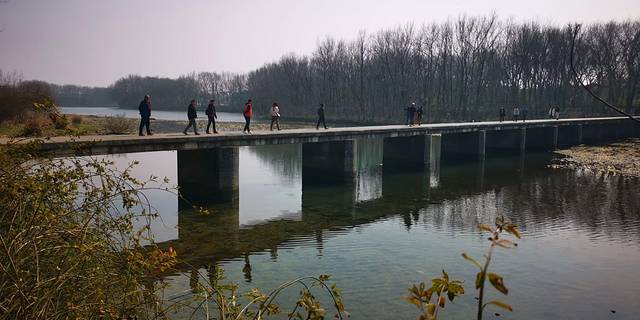 河畔是一大片自然湿地,还有长达4公里的枫杨林,天鹅、白鹭、野鸭和不知名的鸟儿,在林中、在水里,飞东飞西、游来游去,这里就是网上爆红的绿野仙踪取景地,也是泛舟河上、林中寻踪、网红小木桥等流量爆涨的小视频拍摄点。