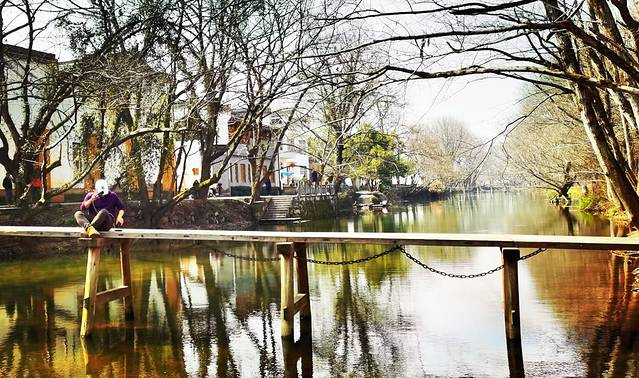 西溪南村主要有三大玩点:一是自然场景:枫杨林+丰乐河+大湿地+小木桥,这里是拍艺术照和婚纱照出大片的地方;二是人文场景:古树+古宅+古巷+古碑,这里是学习了解一系列村史和当地历史的地方;三是文创场所:村内村外,分布着各色各样的文创场所,任你休闲怡乐,这一款是文青们最喜欢的。