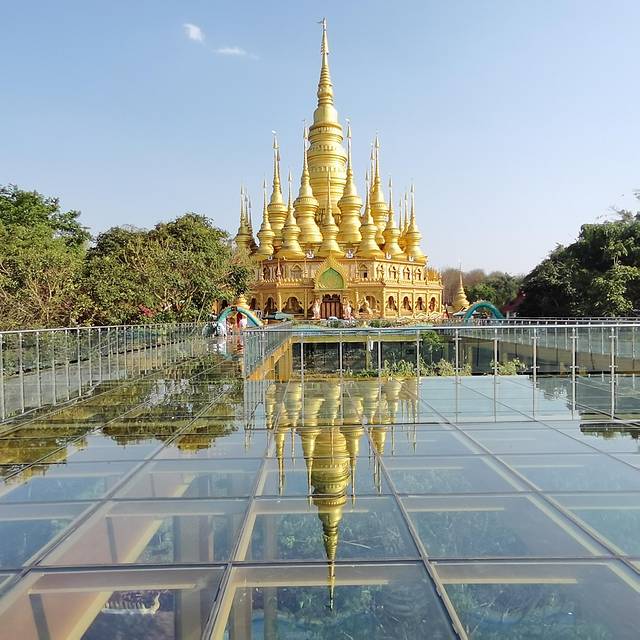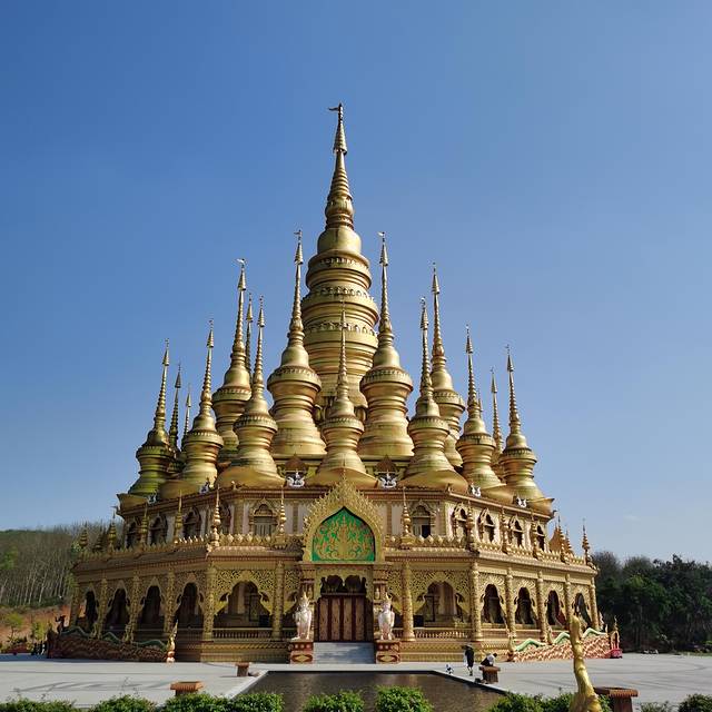 西双版纳真正高品质的景点其实就只有植物园和望天树两个,各需要一天。这两个景区回来时基本是在傍晚,且下车处就在大金塔寺旁边。这个寺挺漂亮地,也不用买票,且傍晚又是最适合拍照的时候,可以花个二十分钟转转。