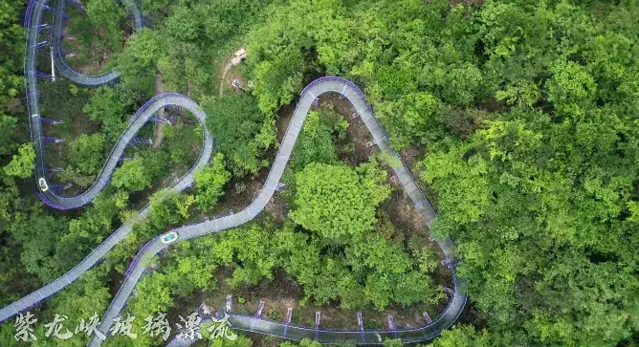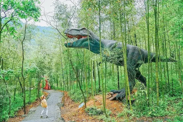 和瑶琳仙境同样以溶岩地貌著称的天子地,有目前世界纪录官方权威认证的世界最长的通体玻璃漂流,紫龙峡漂流全长3000余米,建在海拔500米之上,在山林风景之间蜿蜒穿行。还有小朋友喜欢的恐龙谷,几十只恐龙造型生动逼真,栩栩如生,走在这片竹林间,仿佛置身《侏罗纪公园》。