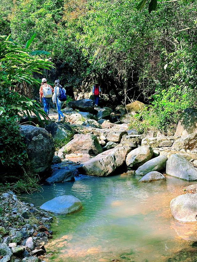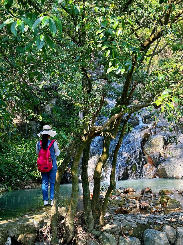 滑下去之后可以沿着山谷走,野趣十足,山间水流潺潺,偶尔可以看到不大的小瀑布。偶尔弓着腰穿过狭小的岩洞里。虽然一直在爬,但还好整体而言没有太大难度,适合大众休闲爬山。