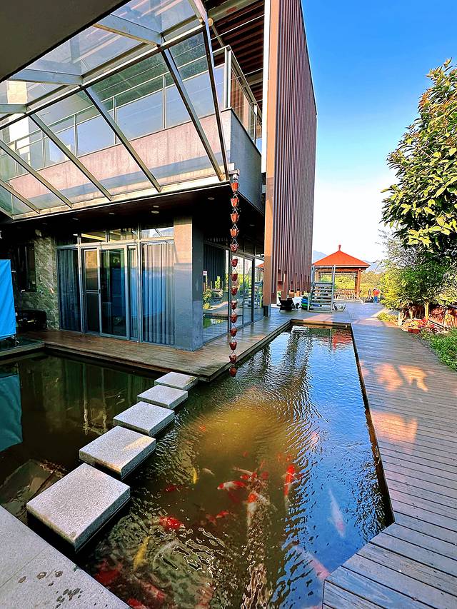 逛 完鼓鸣岩风景区,来到了长泰马洋生 态旅游区里的山隐别 墅,刚下车就闻到了空气中的花香,非常的甜美的味道。然后深呼几口气。那边樟树此时花开得正好,还有含笑,桂花,好些会自带香气的花,不知道是不是这些香气混合在一起,所以才有那种甜美如香氛感。这一幢别 墅院子的面积很大,非常适合大家庭度假和团建。有游泳池,有户外休闲区,室内休闲配备很齐全,还有家庭影院,厨房配备也很到位。卧室也有好几个,楼上的卧室,拉开窗帘就是美景。整体环境相当的不错。