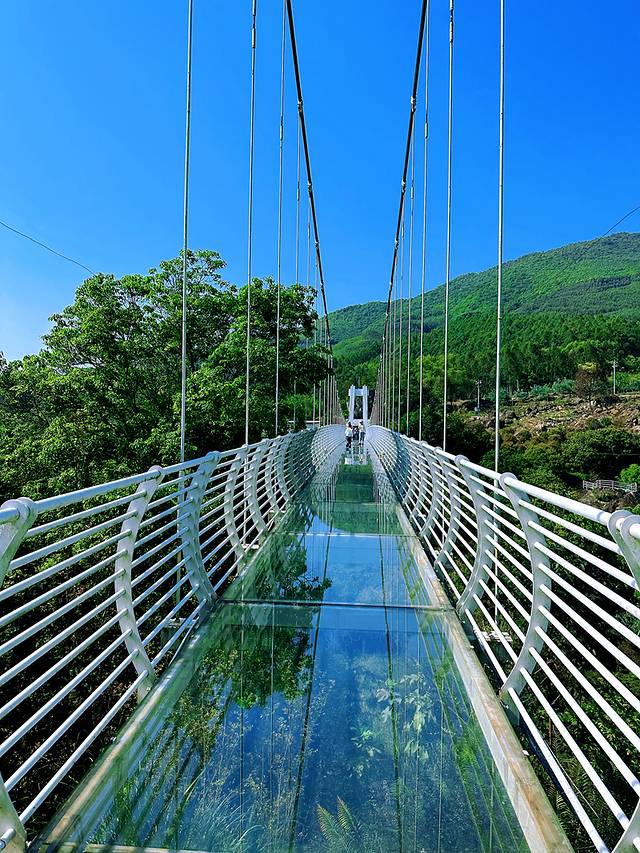 因为之前在上海东方明珠走那个玻璃,我是有诚惶诚恐,这个玻璃桥没走之前我也不知道我害不害怕。我起初站在那看是没有什么感觉的,套了一个鞋套走上去,就想着怎么避开人群,一个劲一直走前面,这样就不会有太多人入镜了。就忘记了害怕这回事了。走完整个桥到对面,心想是要原路走回去,还是从这边下去呢。