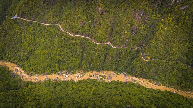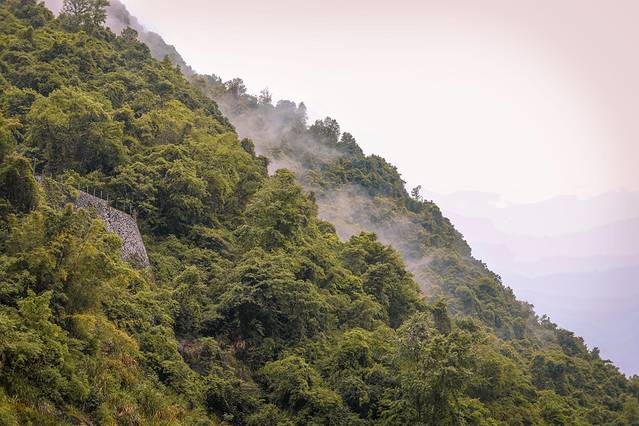 进入到氡泉景区,幽深茂密的植被,沿着蜿蜒曲折的山路而下,耳边的水声越来越大,雨后泉水多了一些北方的粗犷,颜色也由绿色变成了黄色,也幸好是这一场雨,让我们收获了雨雾缭绕,仿若陷阱的华东大峡谷
