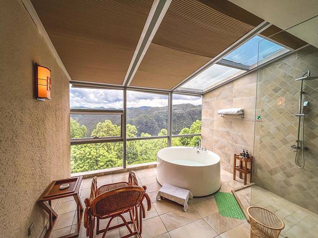 位于半山腰,风景很好,距离氡泉景区只有2公里路程,不出酒店就可以泡温泉,而且是户外温泉,一边泡着温泉,一边呼吸着新鲜的空气,感受着青山秀水间的旖旎风光。