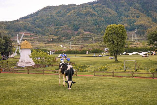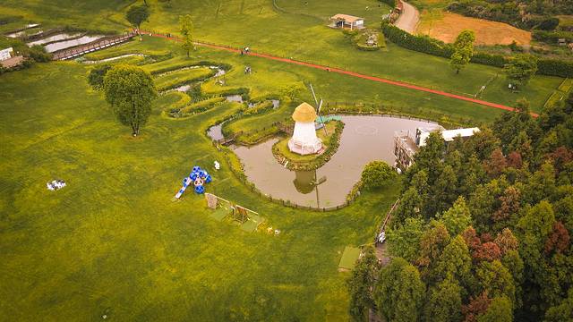 在草坪上奔跑,在荷兰风车下徜徉,与牛儿互动,体验嬉戏魔法屋,还有滑草场、杉树林、人工湿地等多处值得打卡的地方