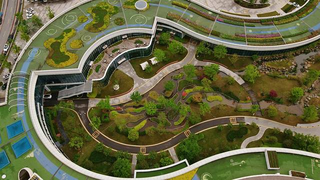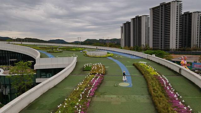 下沉式餐厅、庭院、月亮湾,沿着彩虹塑胶跑道一路前行,顺着潺潺的溪流,欣赏九曲溪的自然风光,如果春天这里花花盛开,不用远走也能感受到十里桃花的浪漫