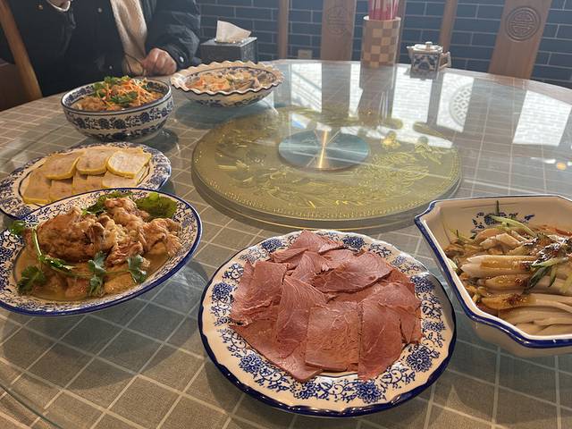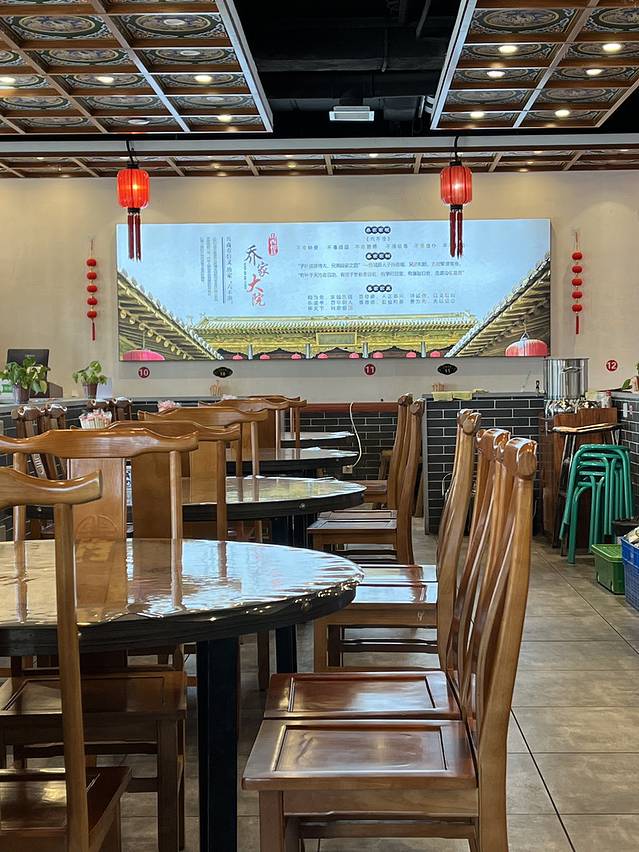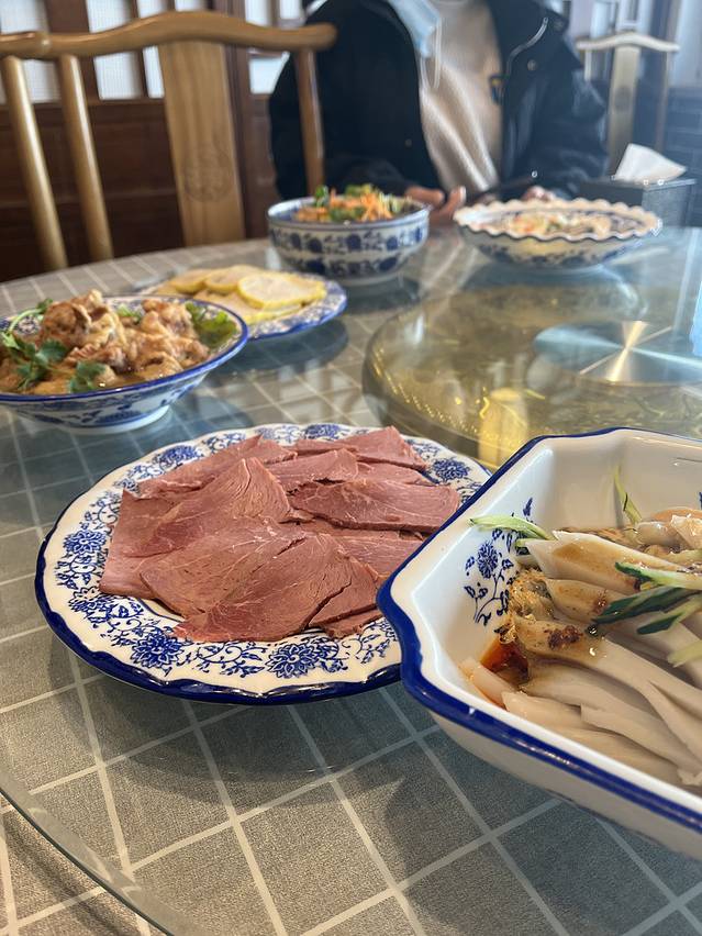 在乔家大院 参观,中午找到一家饭店——乔家老号,门口醒目地贴着五星标志。老板在门口迎客,充满晋商做生意的浓厚标志,和气生财。点了简单的套餐,牛肉一大盆,刀工一流,蛋卷馅是白菜猪肉的,店家又送了蛋汤与凉菜,满满一桌,还好挑了个简单套餐。服务员热情好客,为我们提供意见与服务,满满满满的山西热情,暖。蘑菇炖豆腐热豆腐,好像是冻豆腐做的,入味,满口喷香;祁县蛋卷 当地特色;刀削面传统刀削面,店家广告是单点一碗也管饱,免费加面,还免费送停车券,简直就是景区里的福星