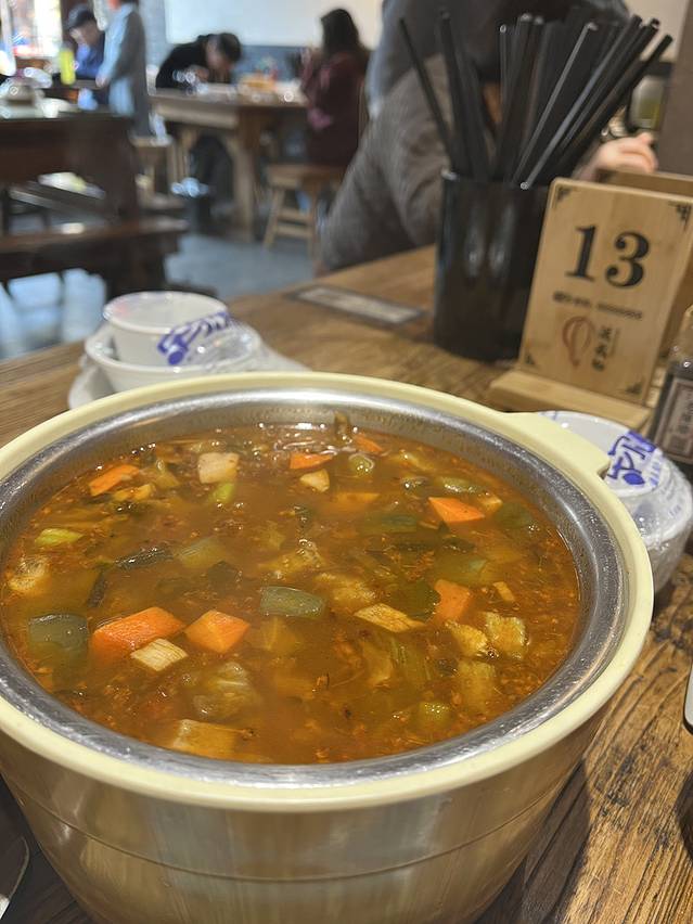 【酸汤莜面鱼鱼】是我爱的味道!莜面包括酸菜汤汁和大米,整体是酸味儿的,但是不是很重,莜面又滑又嫩量也大,总之就是非常好嗦!