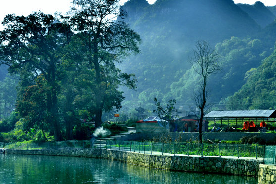 走进风景秀丽的打凼村,一条清澈碧绿的小河在寨前“叮咚”流淌,行走在村寨间,热情洋溢的布依民居和苍劲挺拔的千年重阳古树,构成一幅小桥流水人家的诗意画卷。