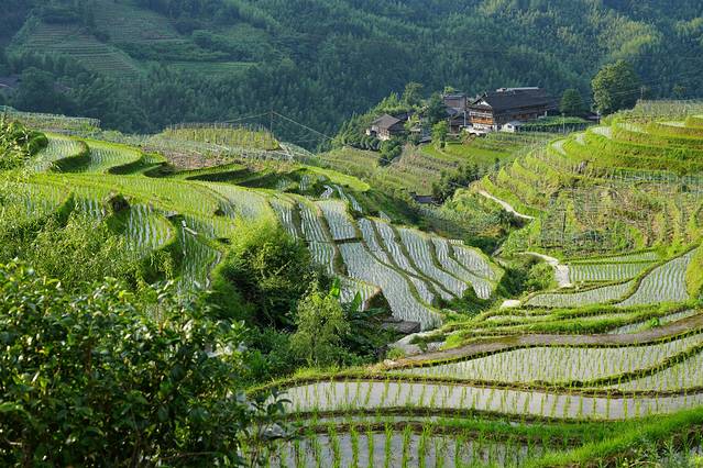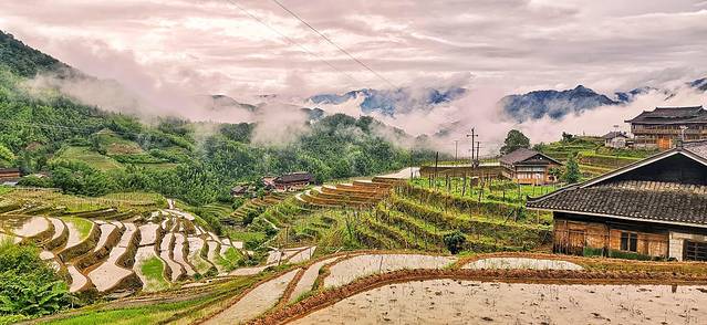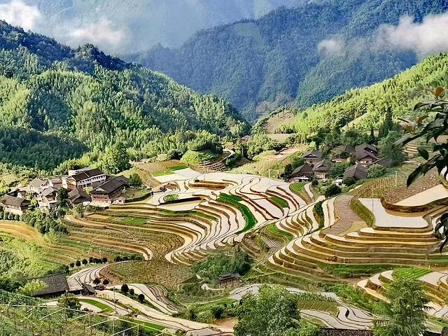在桂林龙胜,相距“世界梯田之冠”——龙脊梯田十几公里的山谷深处,藏着一个少数民族传统古村落--马海村,它的名气没有龙脊大,因此是一个保护得很好的原生态村落。它有着温润多姿、旖旎秀美、层层叠叠的梯田---马海梯田;梯田周围有龙脊最大的竹林,据说有1000亩天然竹林,所以这里保存在砍竹造纸的工艺;马海梯田还种植辣椒和罗汉果,所以也有“晒秋”;村落的民居是传统的吊脚楼,晚上可以看星空、萤火虫,听蛙鸣;这里还有瀑布,真是风景独特、资源丰富。