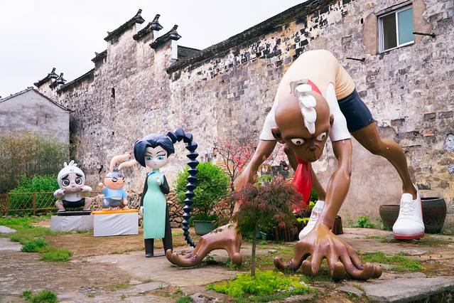 第二天去凤川街道的翙岗村游玩,这个低调的古村落最近在做一个很创意的动漫艺术节。