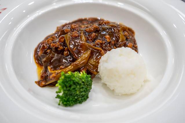 作为南山宾馆的配套餐厅,南山宾馆迎宾楼的晚宴,偏向商务高端,但葱烧海参拌饭这道位菜,的确是有给我留下了非常深刻的印象。葱烧海参的浓郁汤汁,拌上米饭。送入口中,葱香味,海参的鲜味儿,完美的结合在了一起,全部都被米饭吸足,越嚼越香,回味无穷。