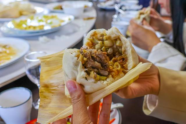 龙口排骨包子皮薄馅大,肉质细嫩,掰开一看,里面是满满的排骨肉,一口下去,特别过瘾。