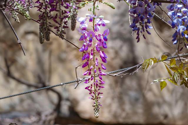 看两颗千年紫藤,历经慢慢岁月,依旧如胶似漆紧紧缠绕,并且在每个春夏都会开出满树的紫花,仿佛在向世人宣告着,专属于他们的誓言。