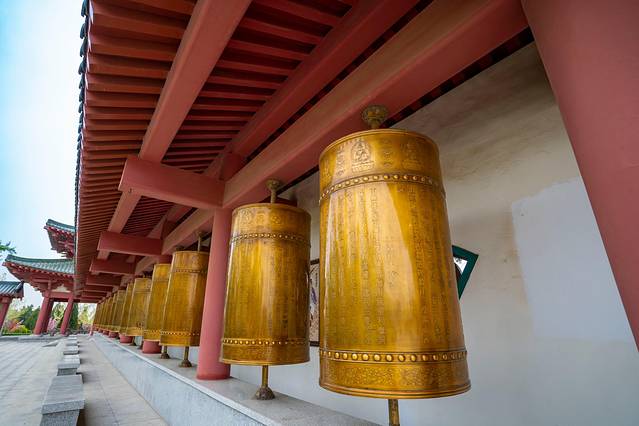 还可以漫步转经回廊,享受当下的宁静与和谐,推转108只转经筒祈福,在心中许下美好愿望,对未来的所有美好,都充满无限期待。
