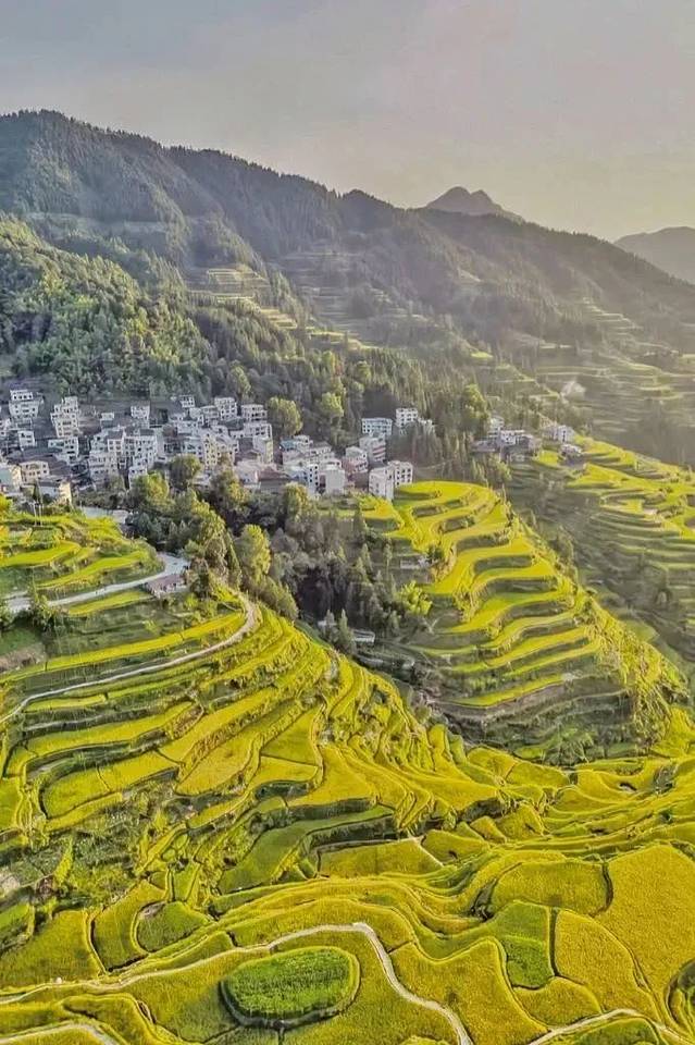 春天的堂安梯田 ,更加灵动更有韵味。梯田都漾满了水,闪闪发光的山似乎都动了起来,如银蛇舞山,如巨龙穿云,气呑山河。