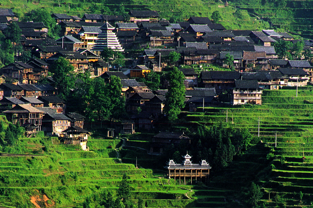 肇兴侗寨,是全国最大的侗族村寨之一,素有“侗乡第一寨”之美誉,也是侗族的民俗文化中心。侗寨建于盆地,四面环山,古建筑密集。花桥、鼓楼、溪流、吊脚楼相间,其建筑规模在全国侗寨中绝无仅有,故又被誉为“鼓楼之乡”。