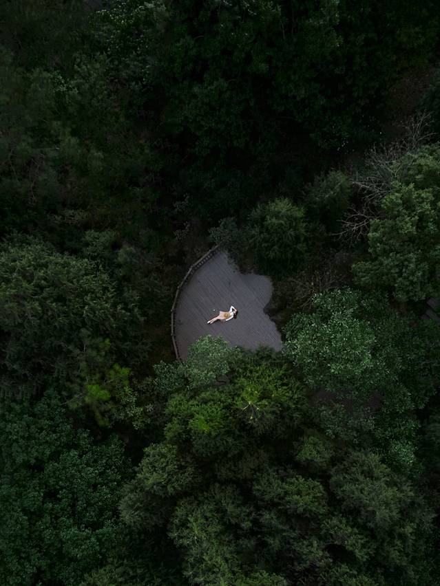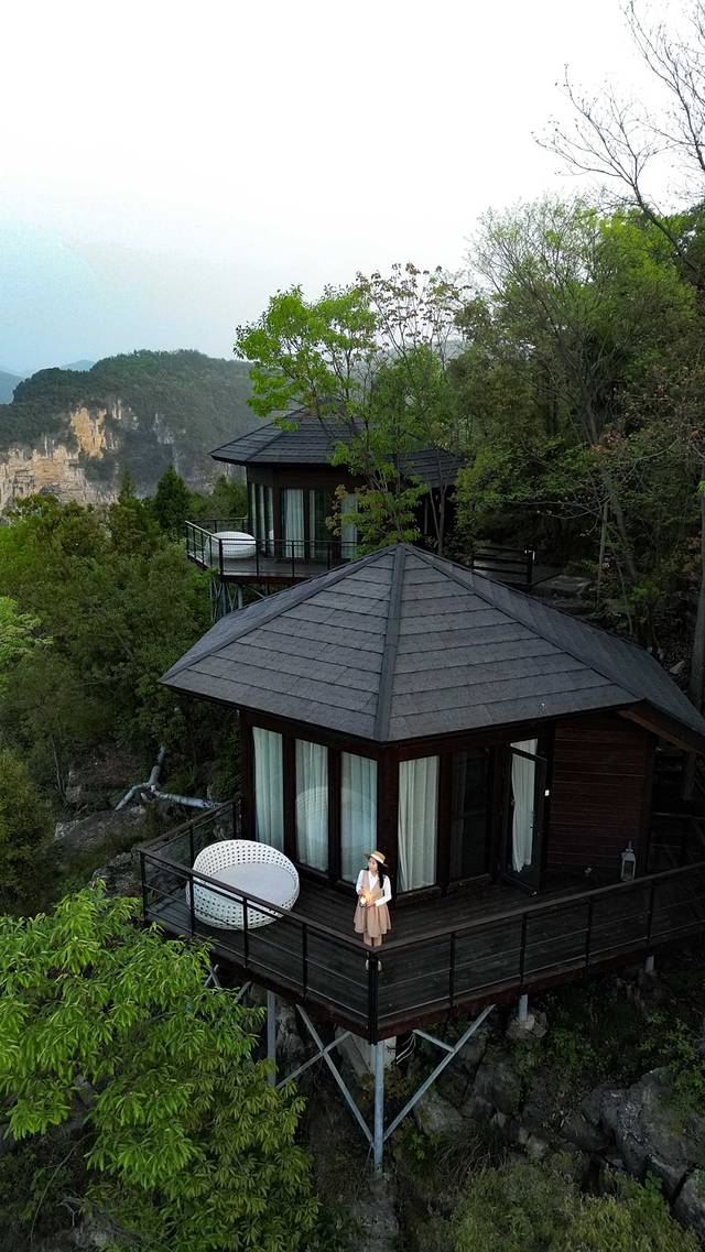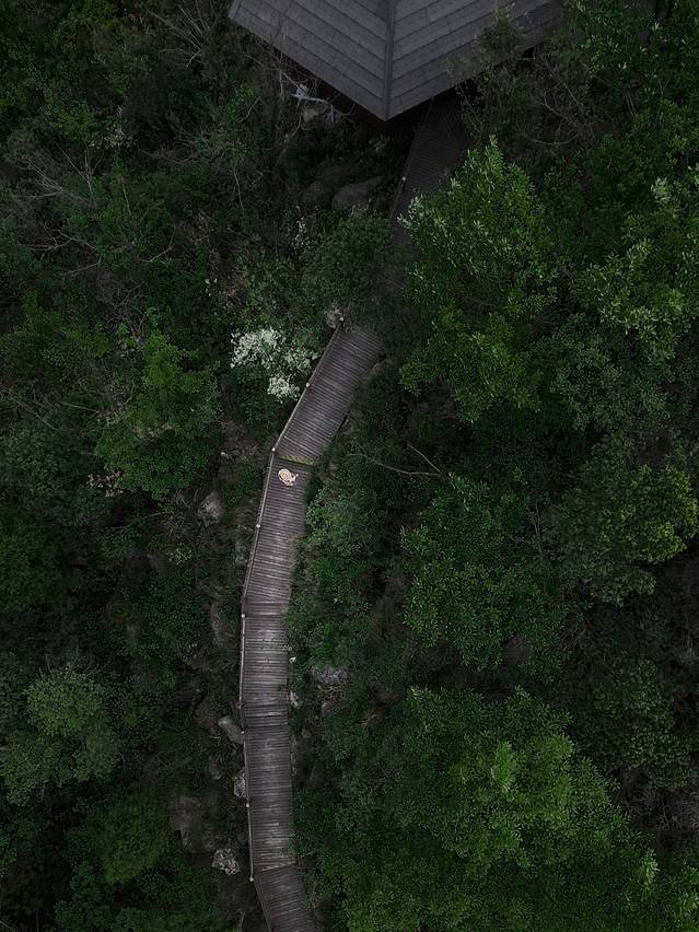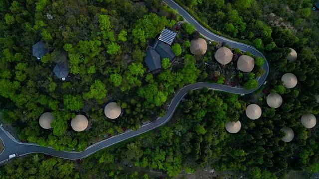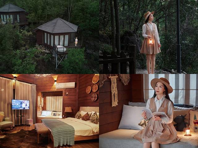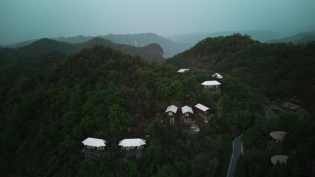 营地有很多房型可选择,房车,木屋等还有很多互动的公共区域,我们入住的野奢木屋,隐于林野山间,体验感十足。如果用无人机拍摄,可以拍到很棒的照片。