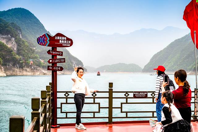 游在清江画廊,以观山赏水为主,但有一点很妙的是,整个景区百分之八十的行程都是在游船上,完全不费力,哪怕是老人或小孩,也能玩得很舒服。