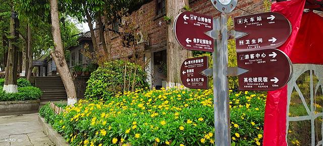 我们此时来油菜花已开过,听说油菜花开时间人多的小火车都没有座位,务必要提前订票。我们在小火车到达站游玩了一阵,这里已形成了小景区,依托原来的矿区打造的街区,有矿山博物馆、中英街(解放前嘉阳煤矿时任股东中福公司背景为中英合资企业)、煤矿大锅饭等餐厅。