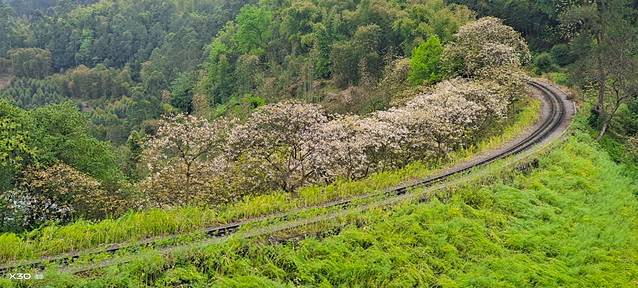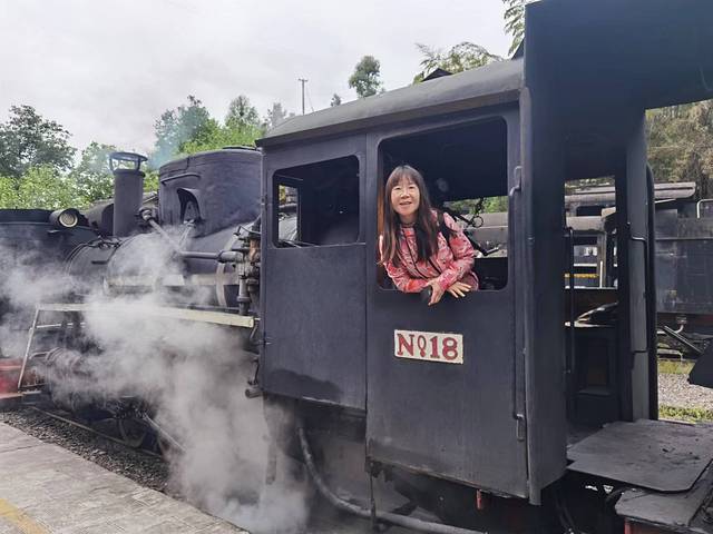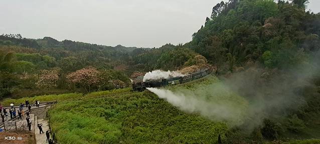 第二站是小火车蒸汽表演,所有游客下车,上到两边较高地势观看表演。白色的巨大蒸汽从火车头和两侧喷射出来,弥漫在两边的绿色中,煞是好看。之前攻略说2或3月来能看到满处的油菜花,小火车喷着气从油菜花丛中穿行而过,形成的画面从而成为网红打卡地。
