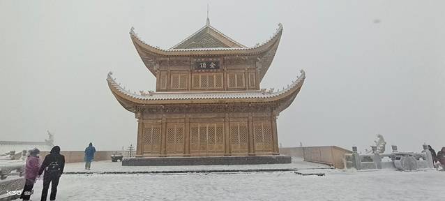 再步行上山,约半小时,7点到达峨眉山的山顶——金顶。