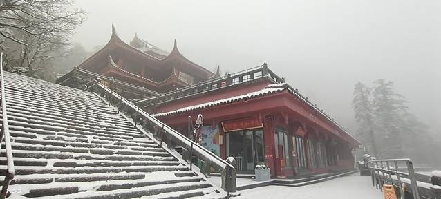 9点按照导游约定的时间开始集合坐索道下山。下到山中间,天气睛朗,完全想像不到刚才还是纷飞大雪。此时已是中午时分,吃了牛肉面后,接下来我们决定去万年寺。可能因为这个点游客才大多才上山顶的原因,万年寺几乎就我们几个人,刚进入,此时又有一当地人搭话,一路跟着我们,说他家就在山上有茶园,总之各种聊天,和我们一起上。到他家时邀请我们品尝他们家的茶,品了茶,果然是要买的,买了一斤峨眉山野生茶(150元/斤),打算回去也可以送朋友。