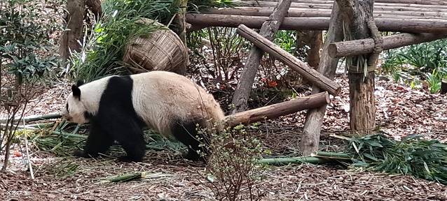 因为是周六,天气也好,家长带着小朋友的一起来的家庭团较多,百度说这里面的看点很多,这里建有各种大熊猫繁育所必须的设施,有熊猫馆(别墅)、饲料室、产房、实验楼等,还种有大熊猫食用的竹林和灌木,可以转一天。每一只熊猫都有自己的名字,园园、花花等,有1、2岁的,也有十几岁的。