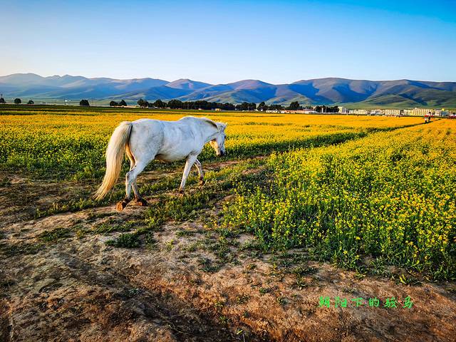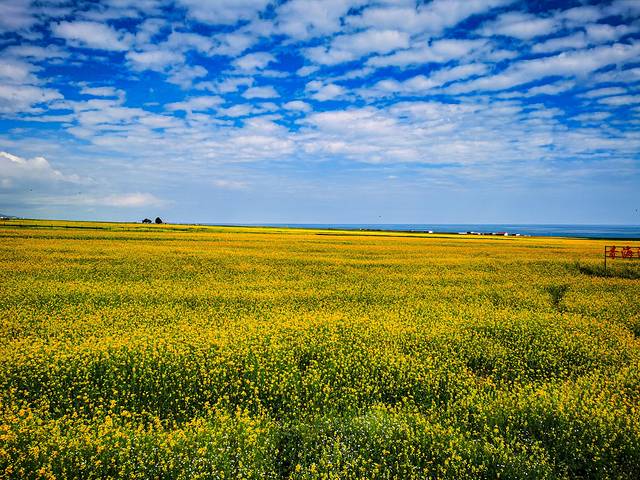 前往青海湖,数十公里,蓝天白云下,金黄的菜花盛开在路边,蔚蓝的湖水延伸天际与天空融为一体,身心俱醉。