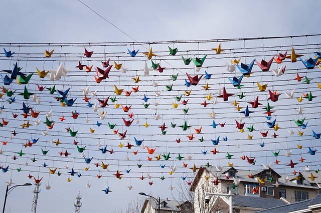 镇上的千纸鹤,夜晚的灯都很漂亮